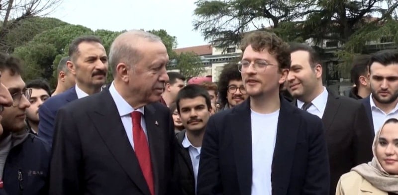 Burada kalabalık öğrenci grubu tarafından karşılanan Erdoğan'a bazı öğrenciler, "Gençlik seninle gurur duyuyor" sloganıyla sevgi gösterisinde bulundu.