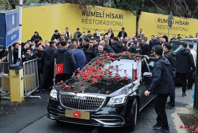 Öğrencilerden bazıları ise Cumhurbaşkanı Erdoğan'ın makam aracının üzerine karanfil bıraktı.